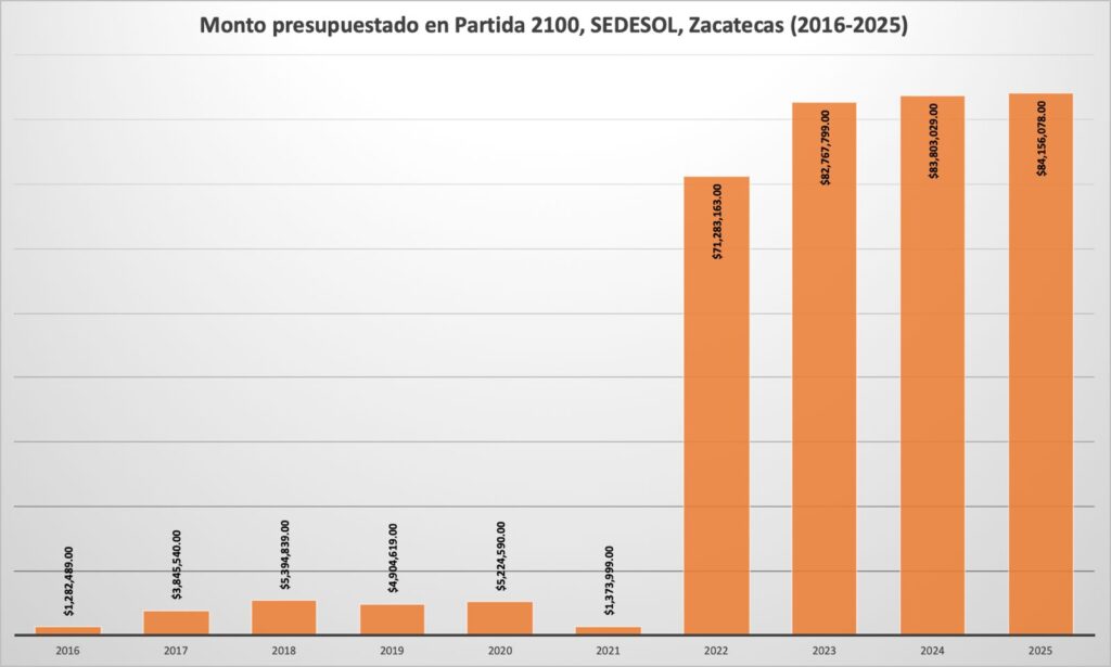 Sin embargo, a partir del 2022, ya en tiempos de la «nueva gobernanza» y el gobernador David Monreal, el monto asignado a dicha partida en la SEDESOL se disparó hasta los 71 millones 283 mil 163 pesos. Para este ejercicio fiscal, el monto asignado alcanza los 84 millones 156 mil 78 pesos.