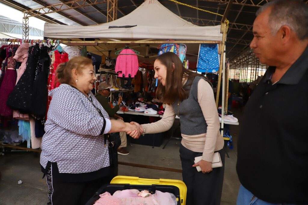 La panista asistió al Mercado de Abastos, específicamente a la zona conocida como “Fierreros”, que es uno de los tianguis más grandes de Zacatecas. Ahí fue recibida por Juanito, uno de los pioneros de esa área.