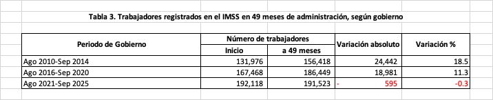 En 49 meses que van de la actual administración se han tenido 25 meses con pérdida de empleos formales (las caídas más notables, en octubre de 2024 y en diciembre de 2022). El resto de los meses se ha tenido un crecimiento marginal, poco significativo.
