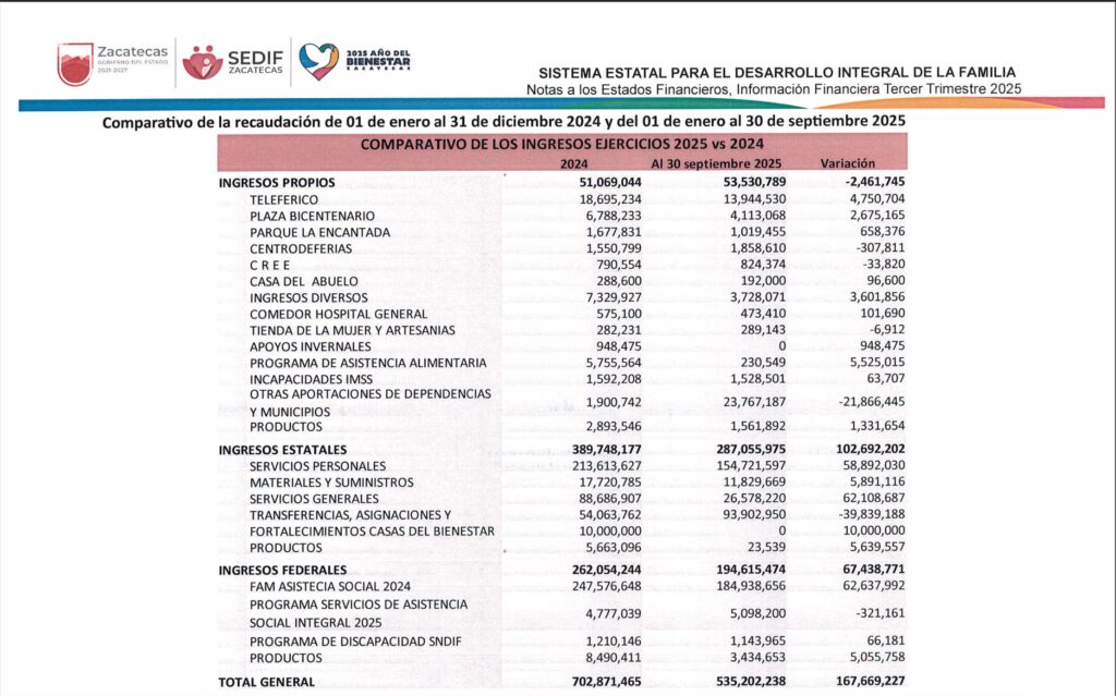Además, llama la atención que mientras en 2024 se reportaban unos 5 millones 755 mil 564 pesos por ingresos del programa de asistencia alimentaria (o sea, las despensas que van peso a peso con los municipios), para el 30 de septiembre de este año apenas reportaban ingresos por el mismo concepto por apenas 230 mil 549 pesos. ¿Hay incumplimiento de pago en municipios, o más bien es una fuga de recursos que no se están reportando en la contabilidad oficial?