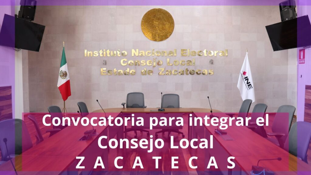 El Instituto Nacional Electoral (INE) convoca a toda la ciudadanía a participar en el procedimiento de selección para integrar los cargos de Consejera o Consejero Electoral del Consejo Local de INE Zacatecas para las elecciones de 2027.