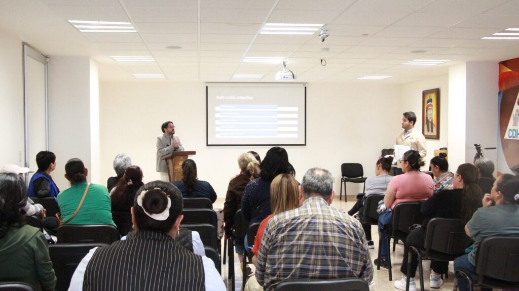 Por su parte, el Dr. Mario Isaías Torrez Torrez, capacitador de la CNDH, explicó que el autocuidado no es una acción aislada, sino una práctica permanente que debe integrar la prevención, atención y seguimiento de los impactos que enfrentan quienes defienden derechos humanos.