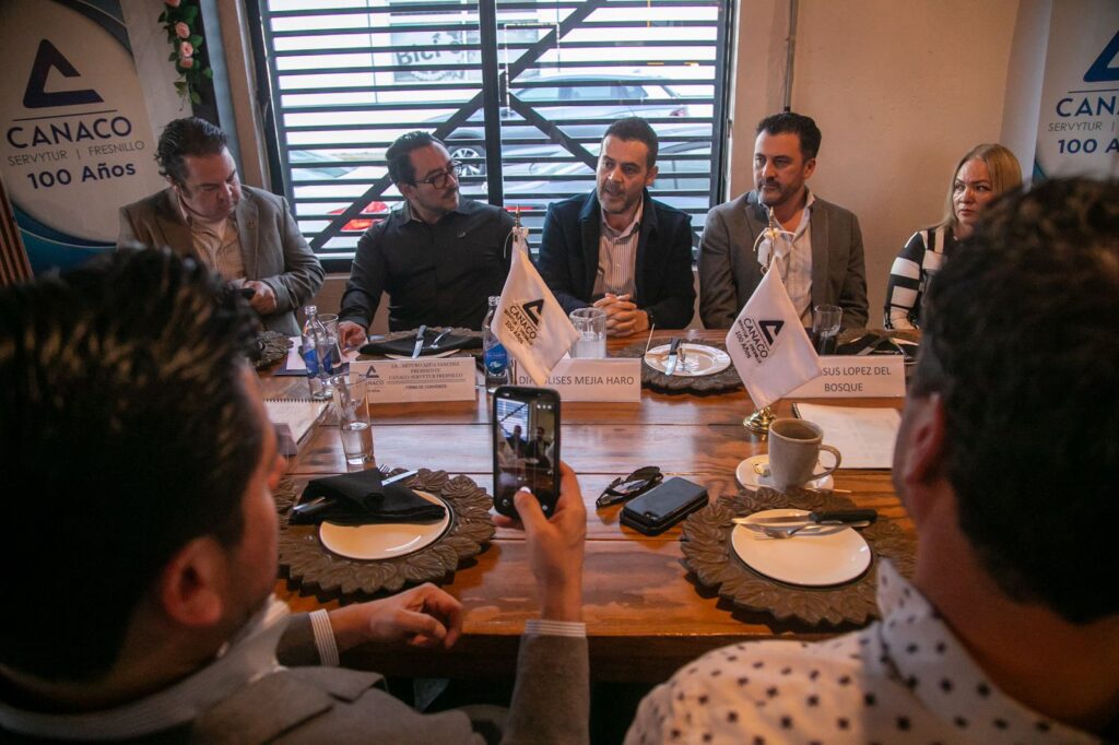 El diputado federal Ulises Mejía Haro sostuvo un encuentro con la mesa directiva de CANACO SERVITUR Fresnillo, encabezada por su presidente, Arturo Azúa Sánchez, donde refrendó su compromiso con el fortalecimiento del comercio local como base del desarrollo económico.